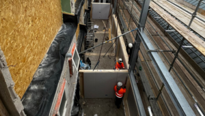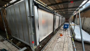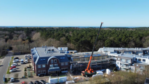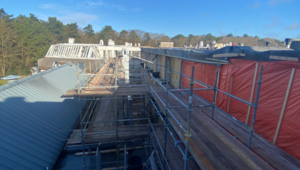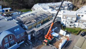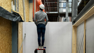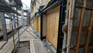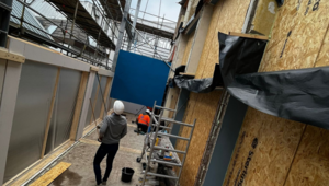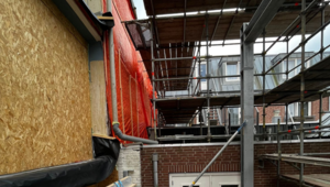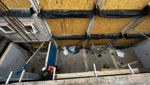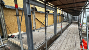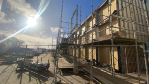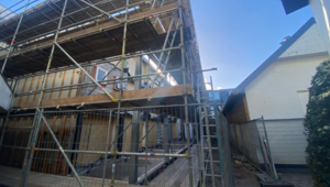 The scaffolding was erected at the beginning of February and the construction of the hotel has slowly started! A fun stage! This month the floor was filled with foam concrete (for insulation) and work was done inside on the pipework and the air conditioning supply and drainage. In mid-February, the installation of the timber frame walls started. At the end of February all timber frame walls were placed.